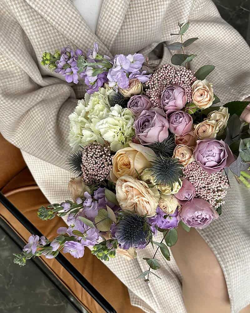 Букет из микса пастельных цветов — нежное и уникальное решение для подарка близкому человеку.